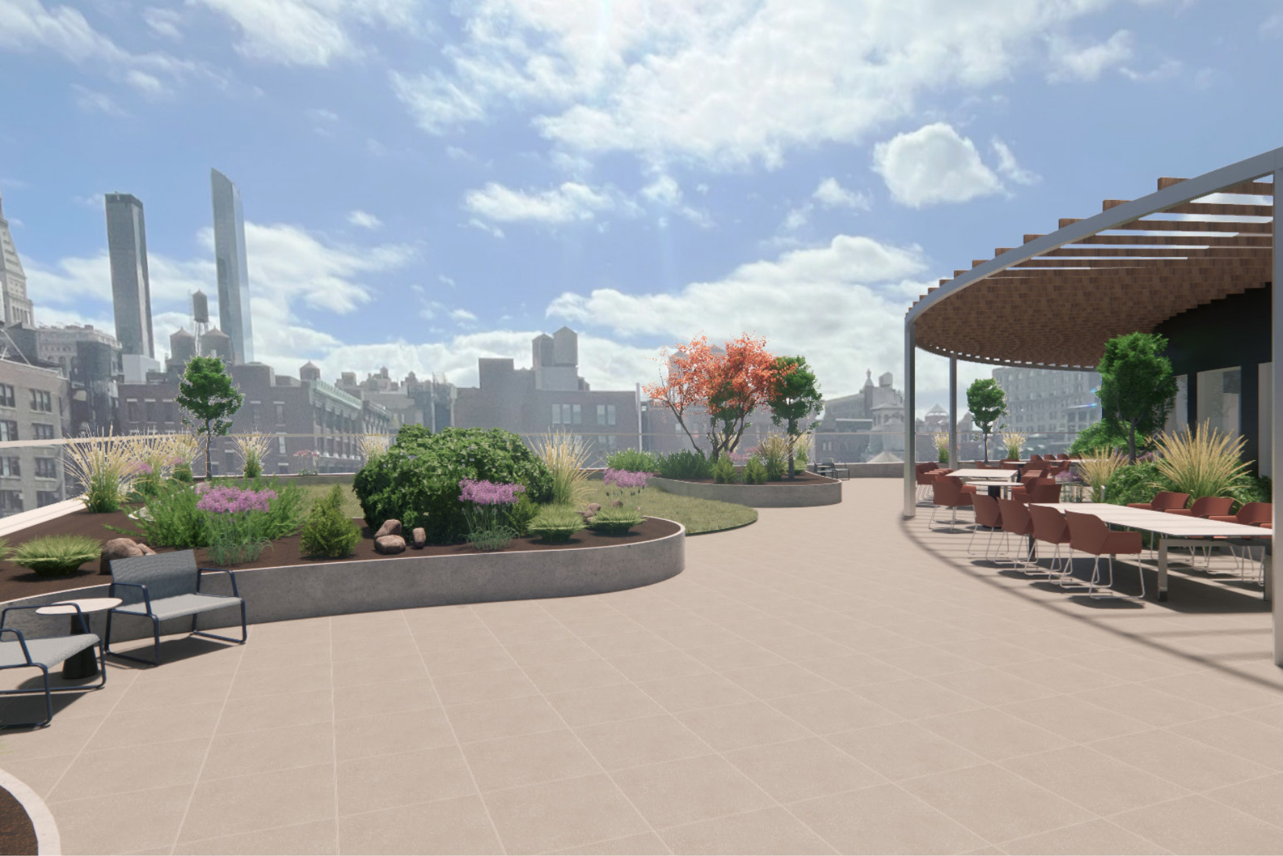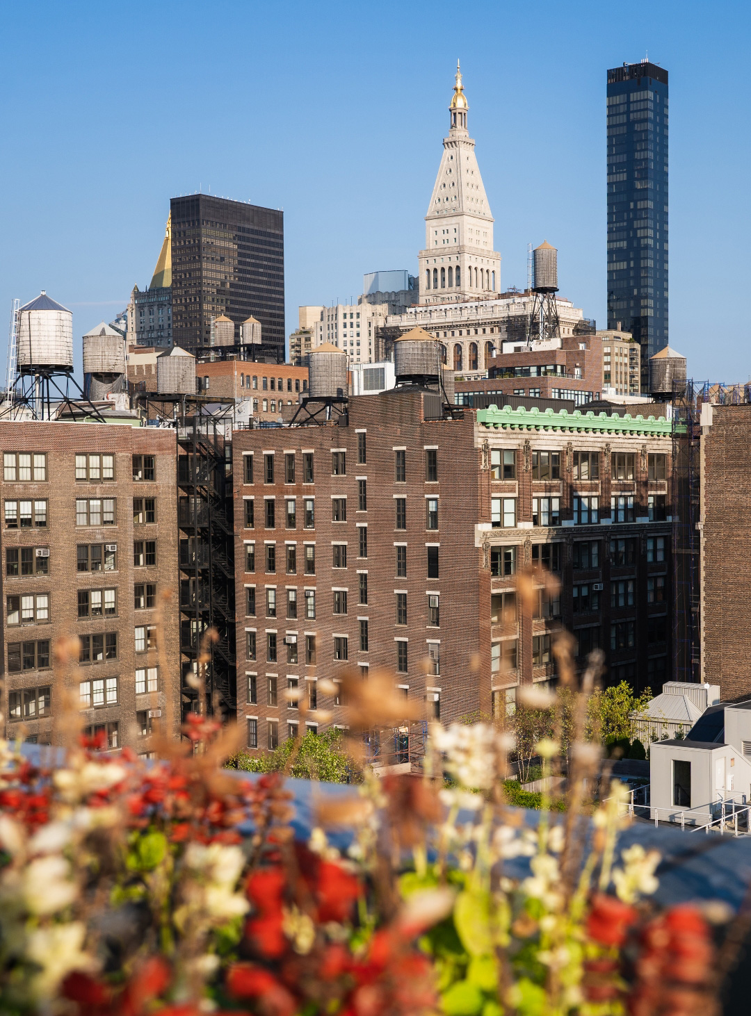 Beyond the sprawling outdoor space on the rooftop terrace, there’s easy access to the fresh air and neighborhood gardens of Madison Square Park.